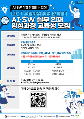 [ICT 유망기업 취업 연계형] AI·SW 실무 인재 양성과정 교육생 모집