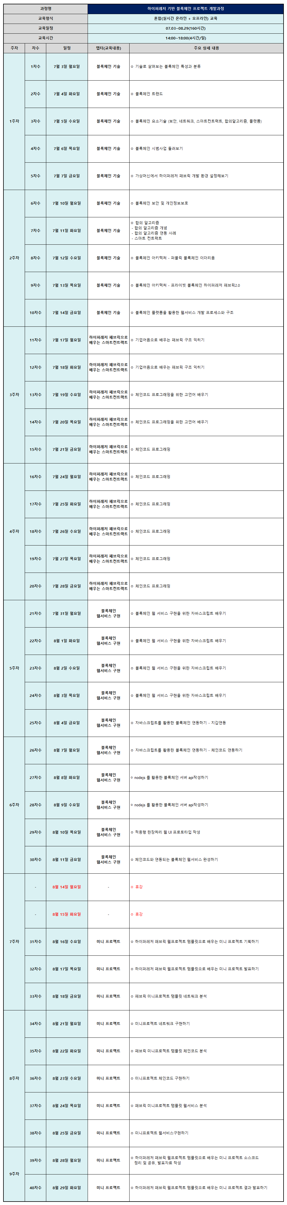 | 교육일정 | 2023-07-03 ~ 2023-08-29 |