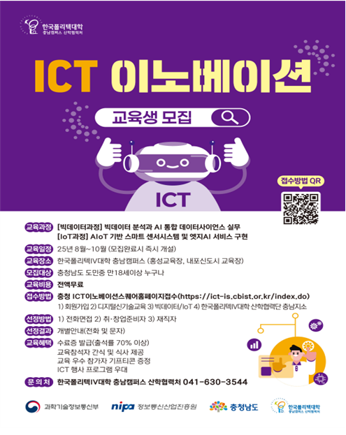 | 문의처 | 한국폴리텍대학 충남캠퍼스 산학협력처(041-630-3544) |