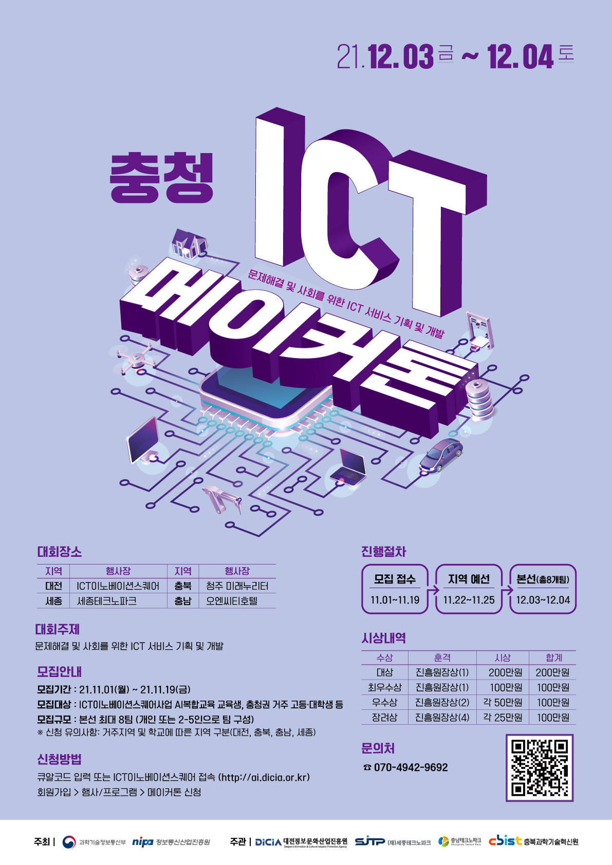 아래와 같이 「충청ICT메이커톤」대회를 개최하오니 많은 관심과 참여를 부탁드립니다.